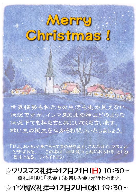 ◇主日礼拝にはリモート(ZOOM)でもご出席いただけます。ご希望の方は教会へご連絡ください。